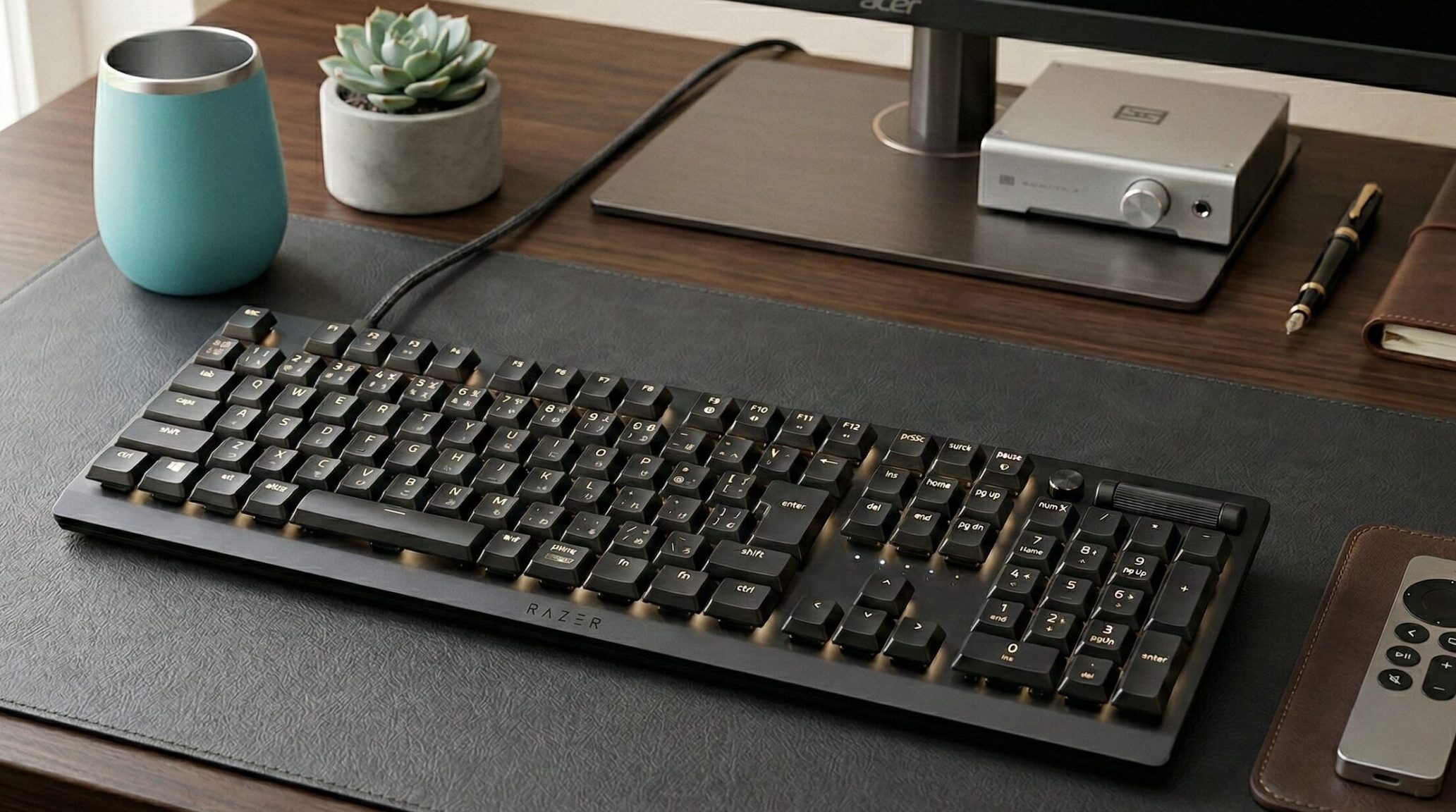 「デスストーカー」って……中学生が考えたゲームキャラみたいな名前ですよね。Razer は Basilisk、BlackWidow、Huntsman など、どの製品も厨二心をくすぐる名前が多いのですが、これは特にきつい。キーボード本体は大人なデザインなのに、名前だけが残念です。