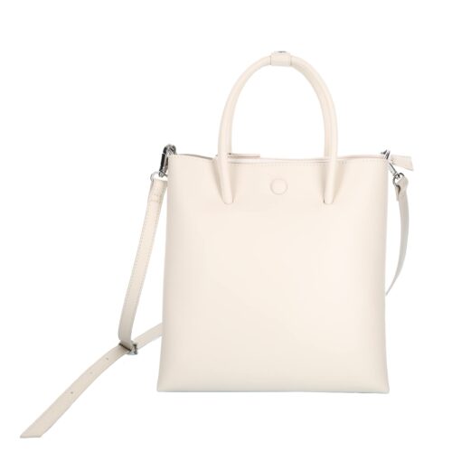 LA.IMUの2WAYショルダーバッグは、その柔軟な使い勝手が最大の魅力です。肩掛けから手持ちまで、シチュエーションに合わせて形を変えられるため、日々のコーディネートに高い利便性をもたらします。オフホワイトの色味は非常に上品で、清潔感のある印象を演出します。