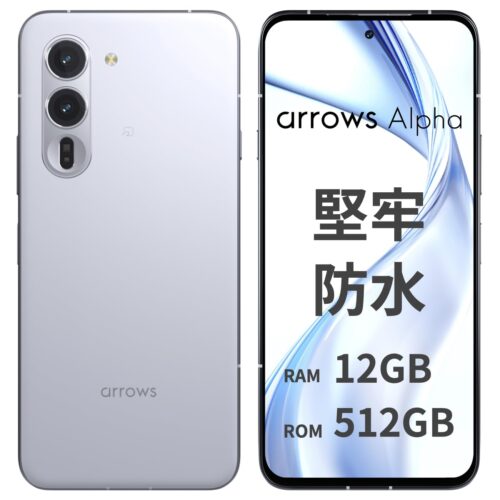 arrows Alphaの最大の特徴は、妥協のない基本性能です。メモリ12GBとストレージ512GBを搭載し、重いアプリの操作もストレスなくこなせる処理能力を誇ります。6.4インチの大画面は視認性が高く、コンテンツの視聴からビジネスツールまで幅広く対応可能です。