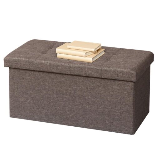 This storage ottoman offers a compact, foldable design that combines comfortable seating with hidden storage space, perfect for organizing small living areas efficiently.